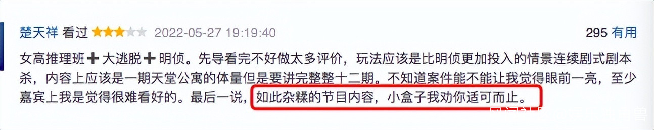 “一口氣吃不成大胖子”、雖然客觀上後明偵時代市場仍未催生一檔新爆款,但騰訊視頻攜手何忱全力加碼的《開始推理吧》,仍備受市場期待,只是播出後卻出現了以上高贊短評。
