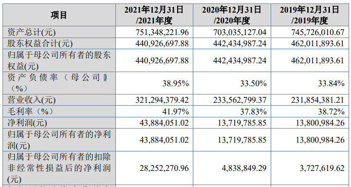 2019年至2021年,富耐克實現營業收入2.32億元,2.34億元、3.21億元;實現歸母淨利潤1380.1萬元、1371.98萬元、4388.41萬元。