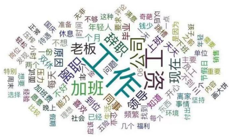 除了不想被大聲責罵,有人把微博“當代年輕人頻繁離職的原因”話題下的留言做成了詞雲圖,**“工資”、“加班”、“領導”、“老闆”**等赫然在列。