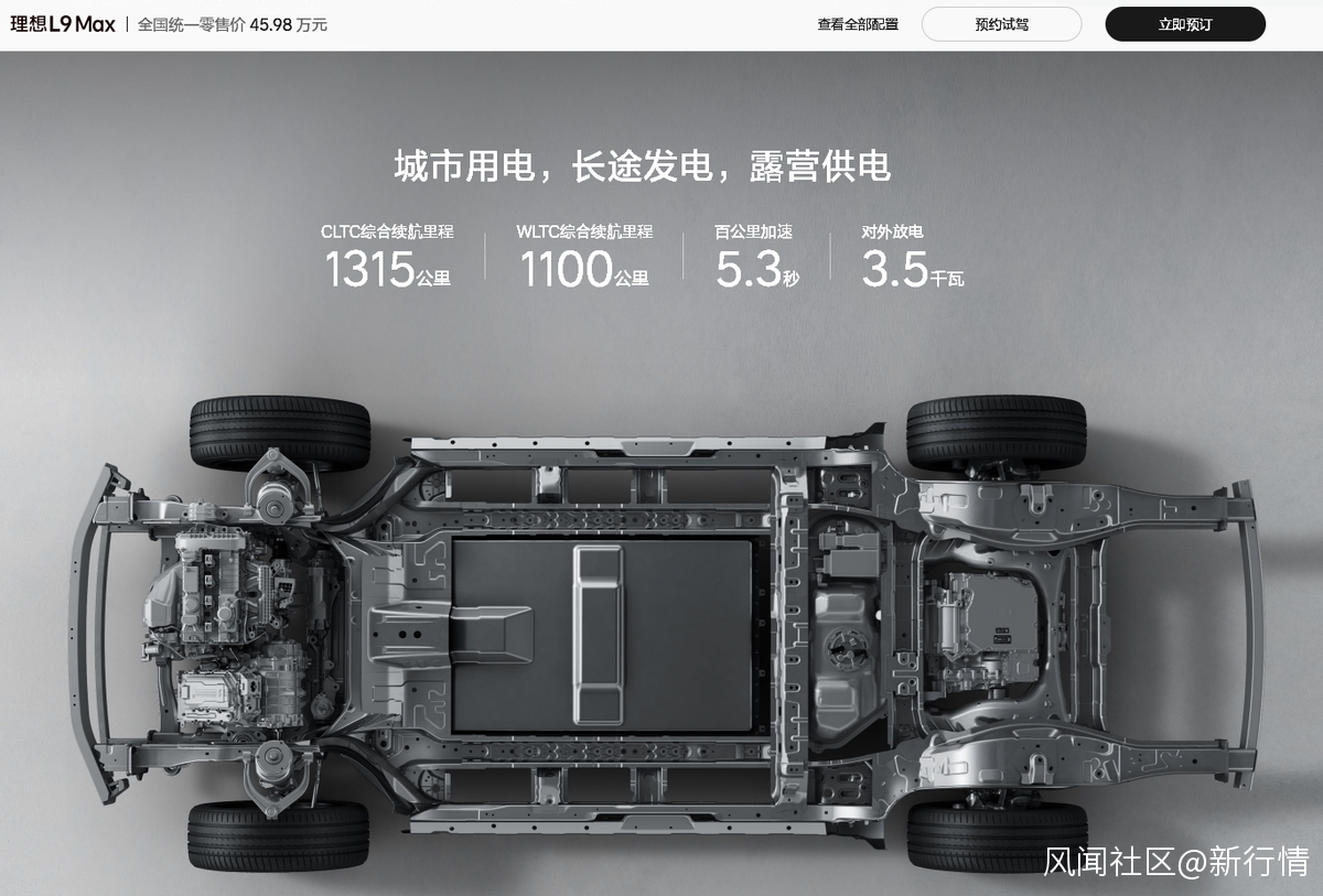為消除里程焦慮,L9繼續採用插電混動技術路線,CLTC綜合續航里程1315公里。同時,搭載全自研智能駕駛系統——理想AD Max,自研增程式電動系統以及底盤系統,實現五屏三維空間交互智能座艙等。