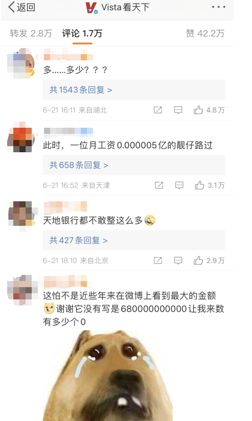 對此,有網友表示,被“6800億元”這個數字震驚了。他舉例道,2021年,快手電商交易總額達6800億元,富士康近日即將在A股上市,業界預估市值為6800億元,目前,A股市值超過6000億元的上市公司只有15家,6800億元,能買下半個中國移動,能買下整個五糧液集團。