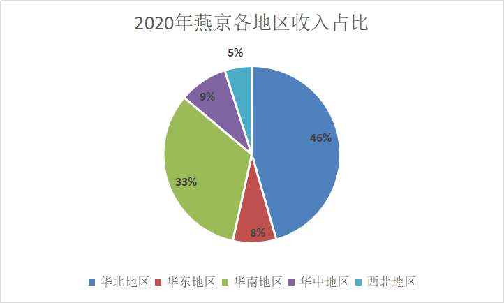 華北是燕京最大的市場,佔燕京總體收入的46%(2020年數據)。