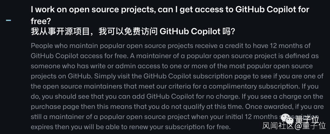 對於熱門開源項目維護者,GitHub提供12個月的Copilot免費使用權限。
