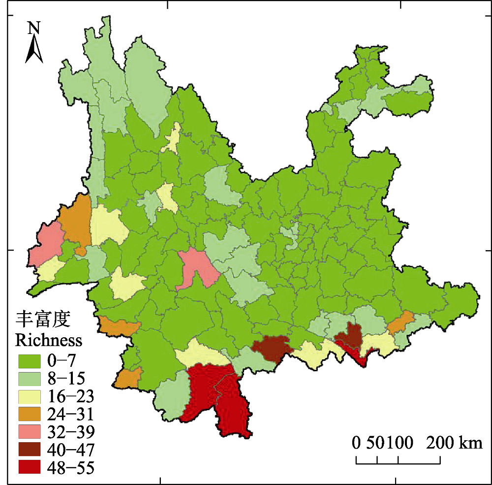 雲南省兩棲類物種豐富度縣域分佈熱點圖 圖片來源:biodiversity-science doi: 10.17520/biods.2021470