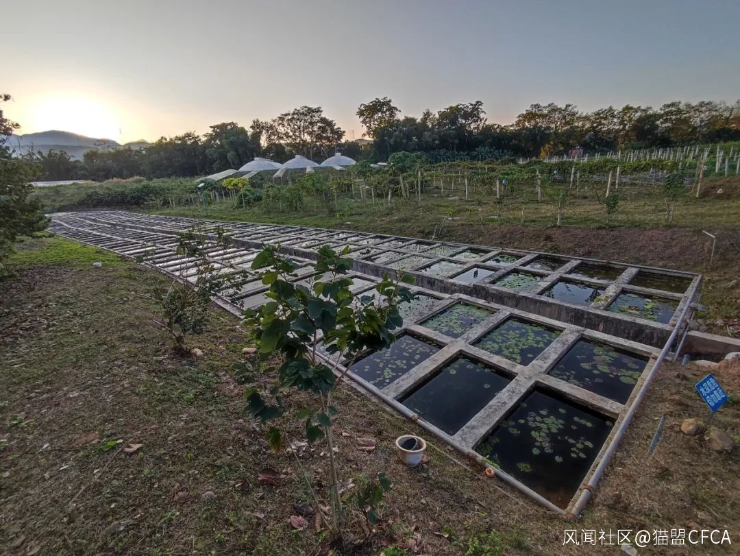 苗圃培養睡蓮的水泥池方陣,因為沒有魚,又是熱帶,全年都吸引蛙前來繁殖,姬蛙的種類是最多的 © 版納老實人