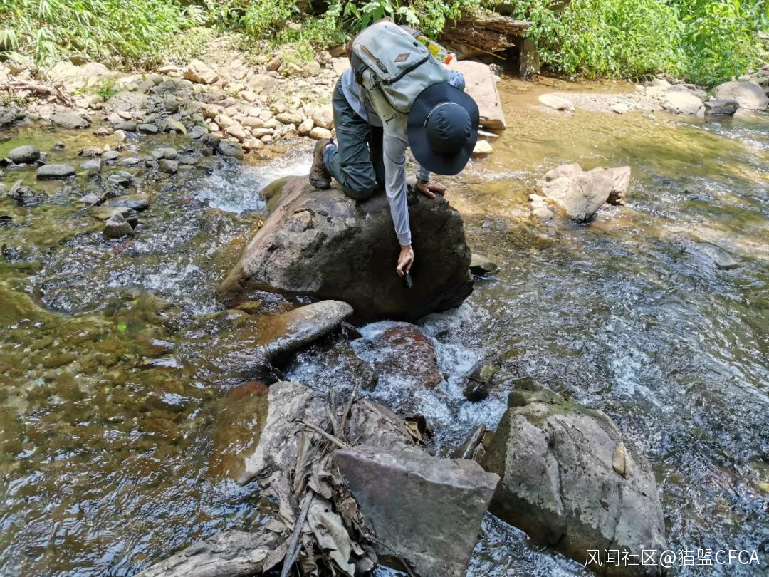 作者在拍攝湍流近水面處石壁上的蟲子 © 小小崔