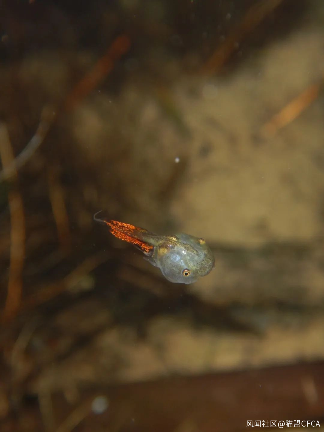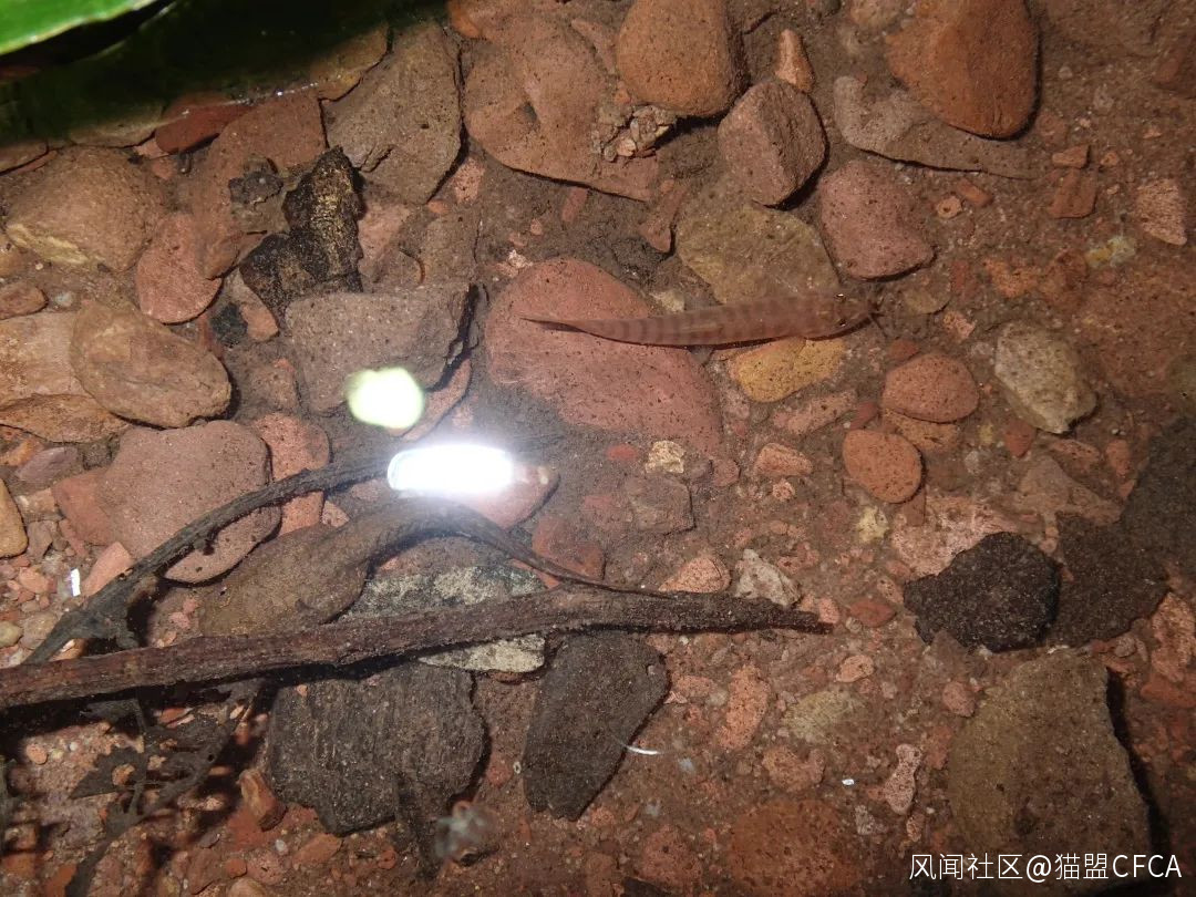 溪流中與橫紋南鰍(Schistura fasciolatus)共存的或許是水蛙的蝌蚪 © 版納老實人