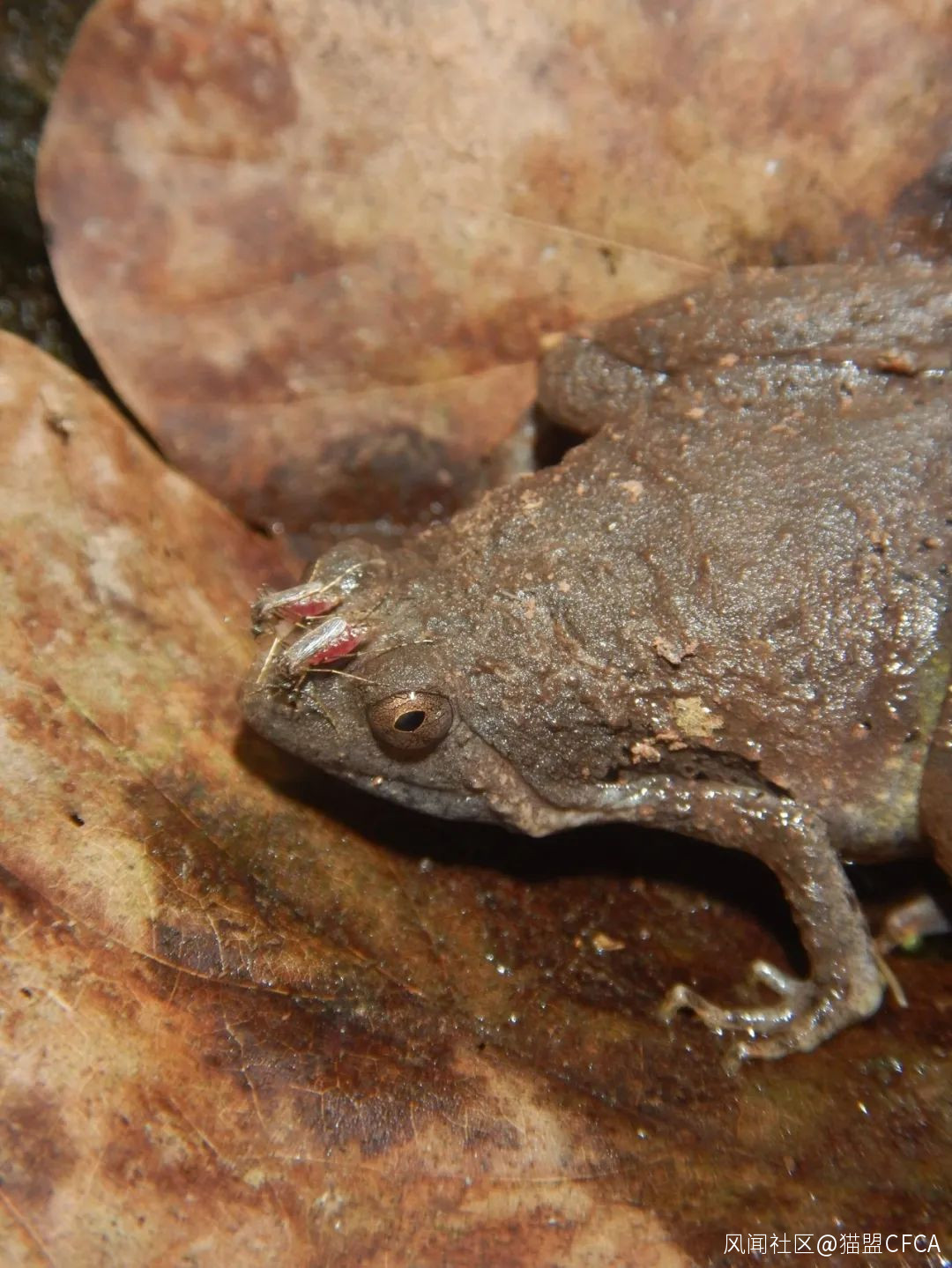 旱季繁殖的緬甸姬蛙(Microhyla berdmorei)被蠓(Ceratopogonidae)叮咬 © 版納老實人