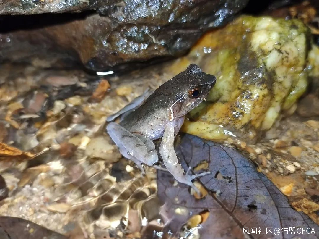 山溪緩流處的黑帶水蛙(Sylvirana nigrovittata) © 版納老實人