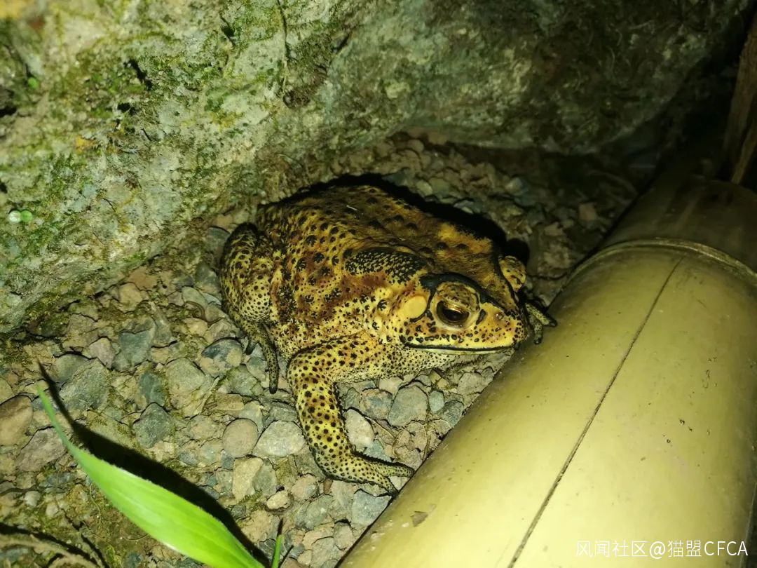 這隻角蟾足有7cm長,一定是隻雌性,看起來與大角蟾(Xenophrys major)一模一樣 © 版納老實人