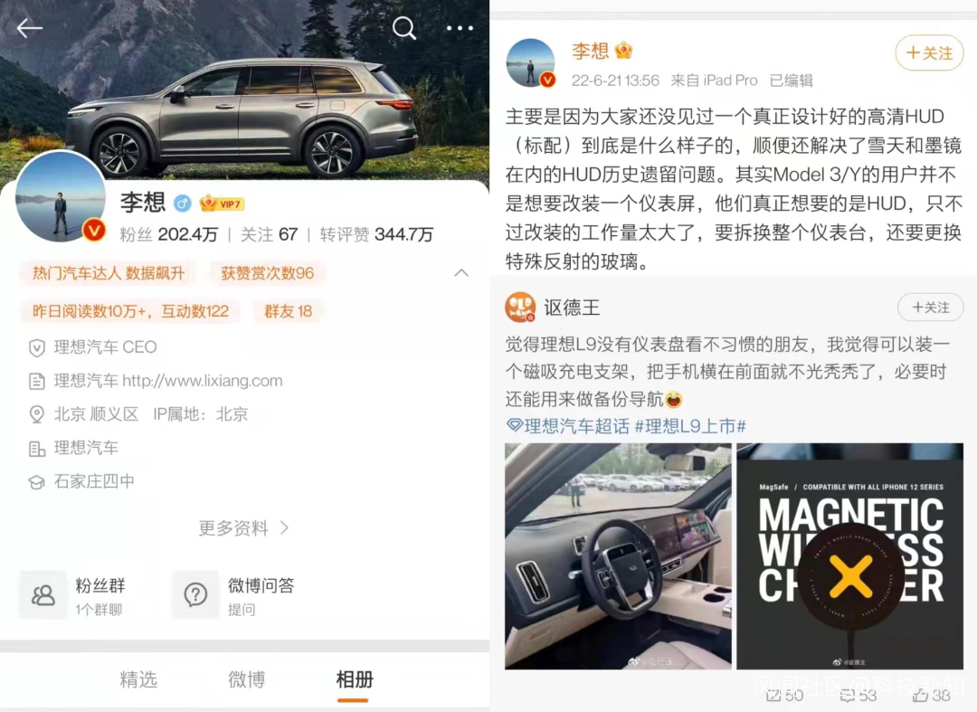 正如娛樂明星的粉絲在微博關注偶像,新能源的興趣用户也在微博關注着這些新能源大佬。如果你曾關注過雷軍、李想、何小鵬的微博,相信對此應該不會陌生。