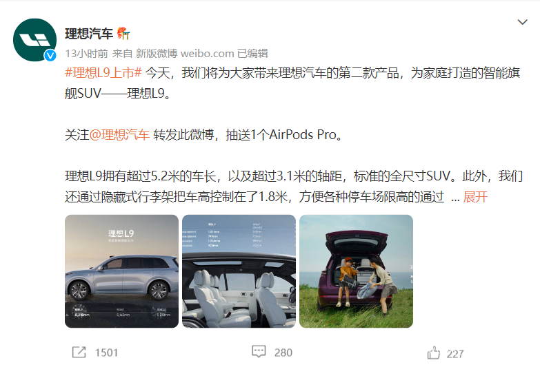 理想汽車第二款新車 " 理想 L9" 正式發佈,8月底前啓動交付_風聞
