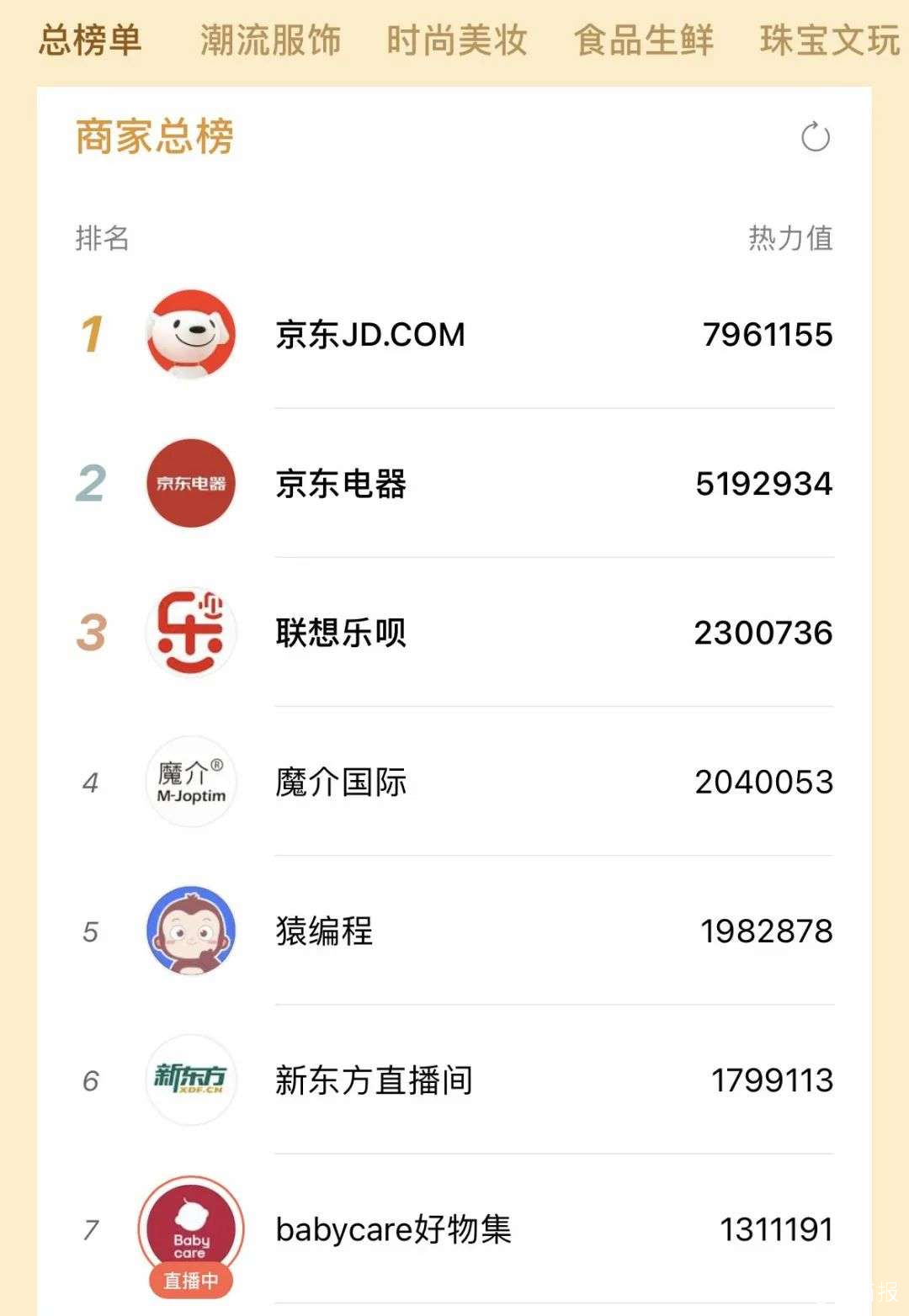 京東和視頻號的聯手不是偶然性的合作。相關榜單顯示,“京東JD.COM”、“京東電器”佔據618期間視頻號直播商家總榜前列。