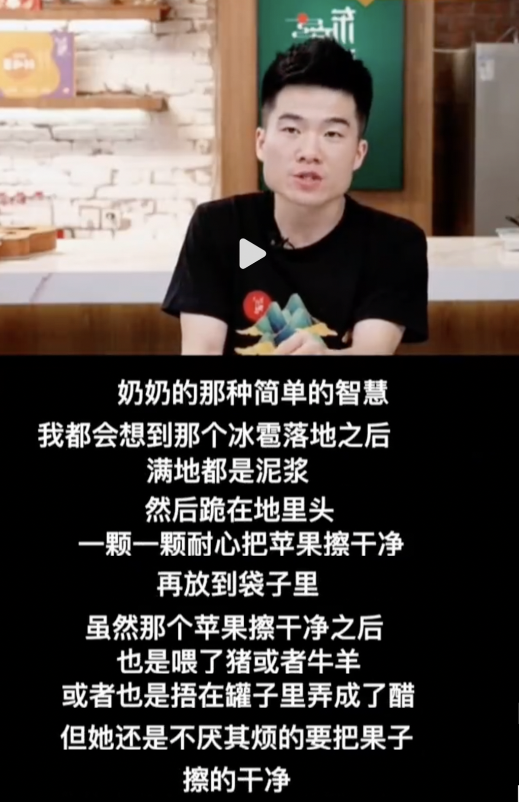 那些沒有熟的蘋果的價值,早已不是冷冰冰的數字,掂量着市場定價和災害損耗,而在於奶奶對它們的反覆擦拭、摩挲、珍重對待。