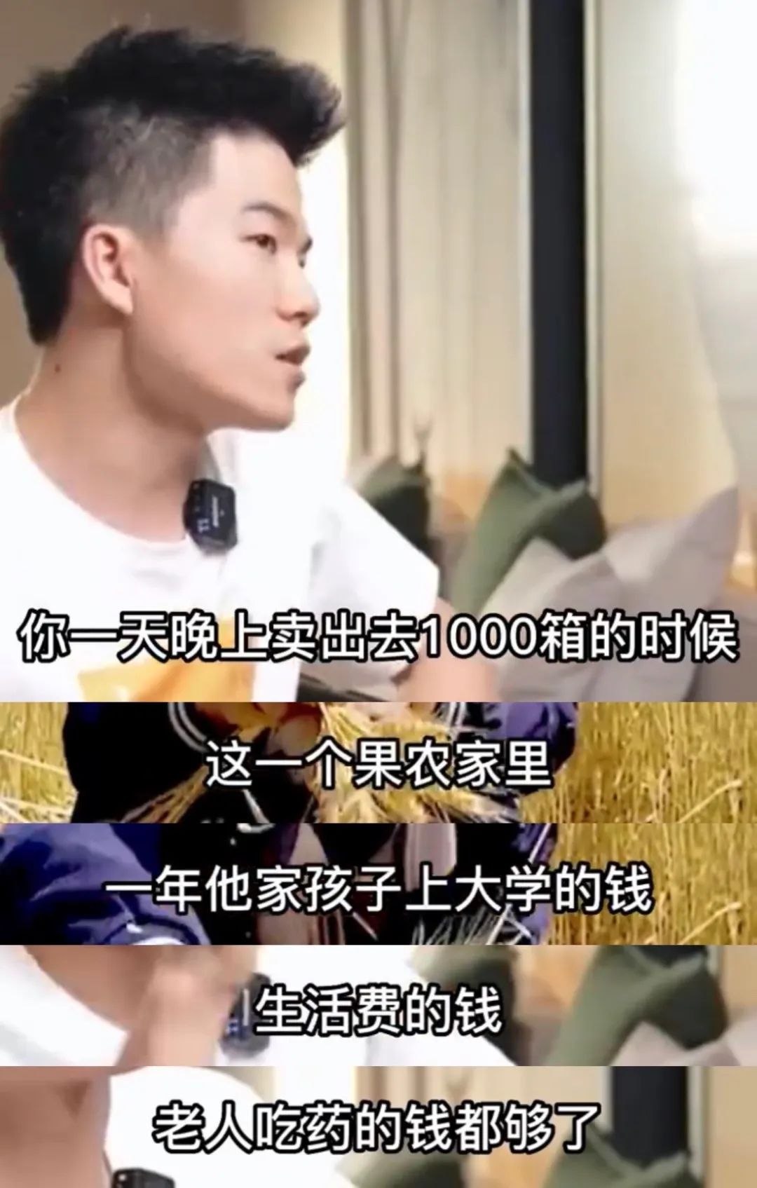 他在直播間賣一千箱蘋果,也許果農的孩子就能交學費,老人就有了買藥的錢。