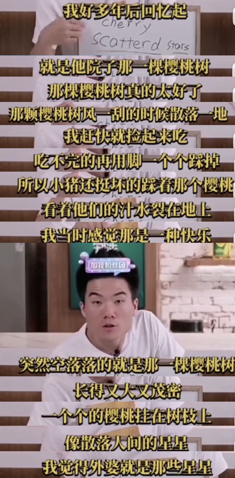 “一個個的櫻桃掛在樹枝上,像散落在人間的星星,我覺得外婆就是那些星星。”