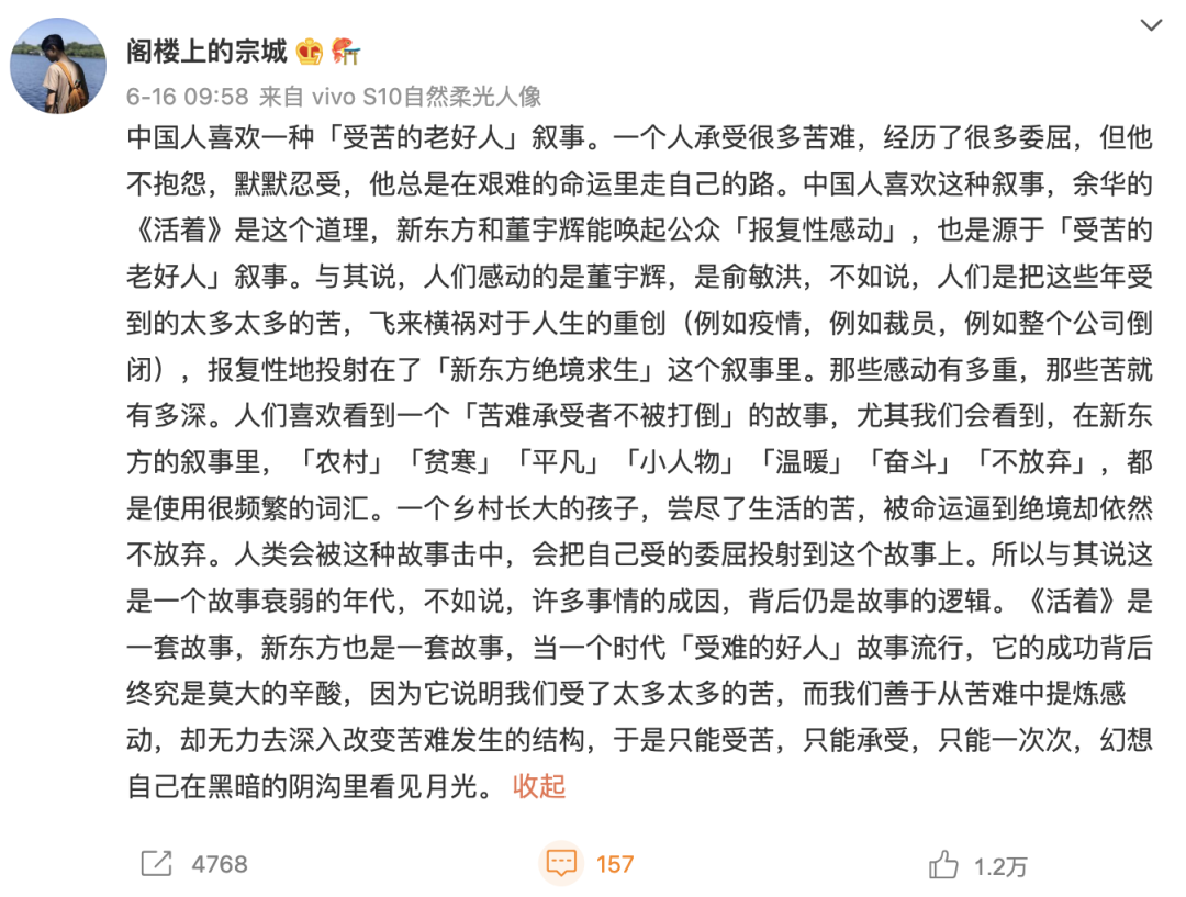 説得都對,可我總覺得,董宇輝一次又一次讓人們駐足,然後心潮起伏,一定不只如此。