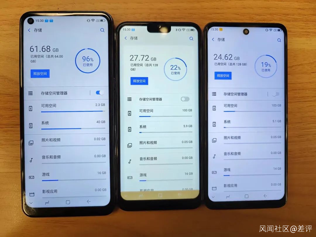 再打開另外兩台手機的儲存界面一對比,嘖嘖,正品 P50 Pro 可算是漏了大餡兒。。。