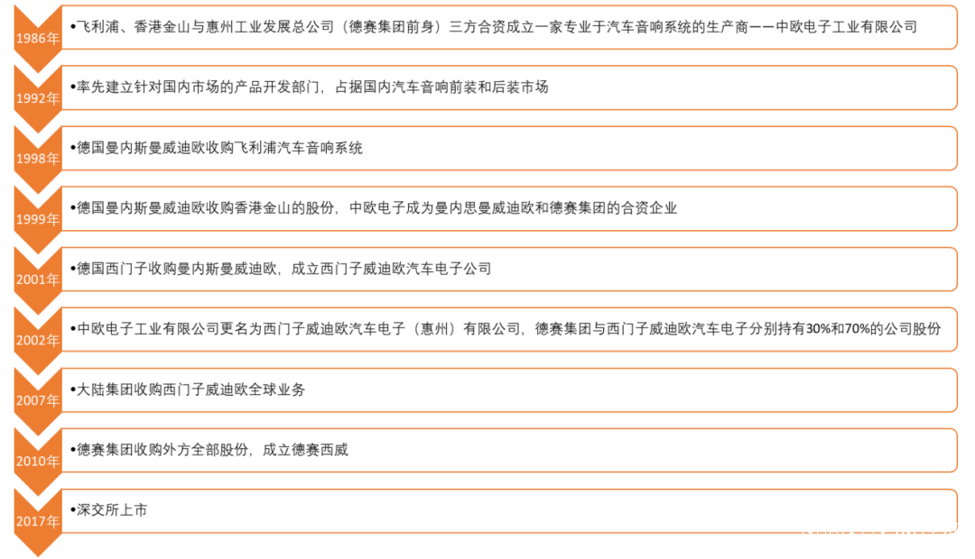 圖1:德賽西威發展歷程,資料來源:公司官網,申港證券