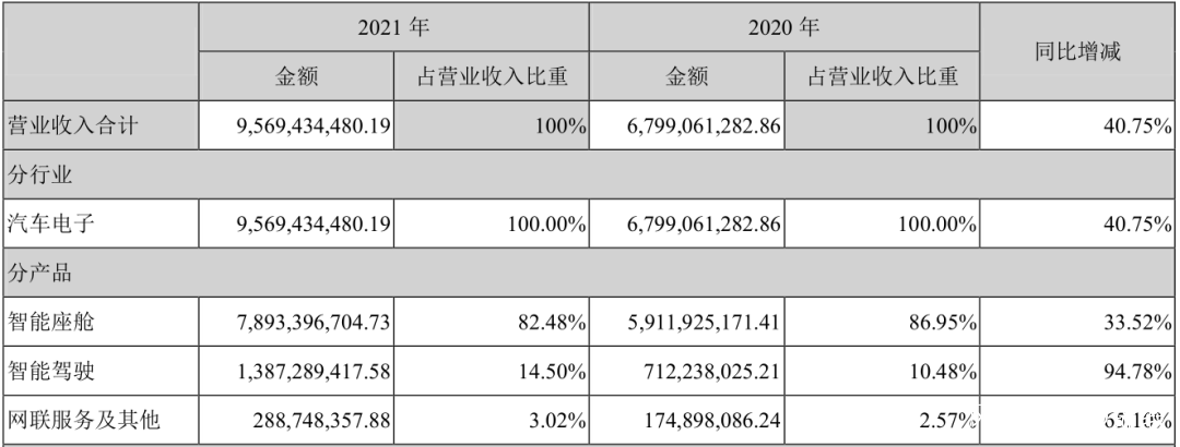 圖6:德賽西威2020-2021年營業收入構成,資料來源:2021年年報