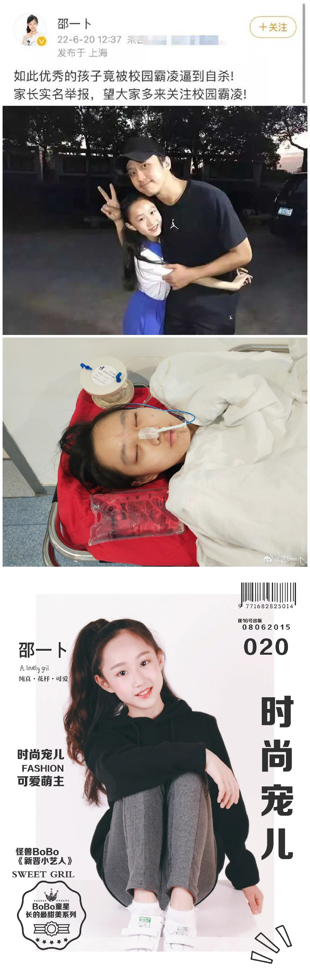 比如6月20日,網絡曝出某邵姓童星自去年始遭遇校園暴力,被逼跳樓自殺,至今無人處理。