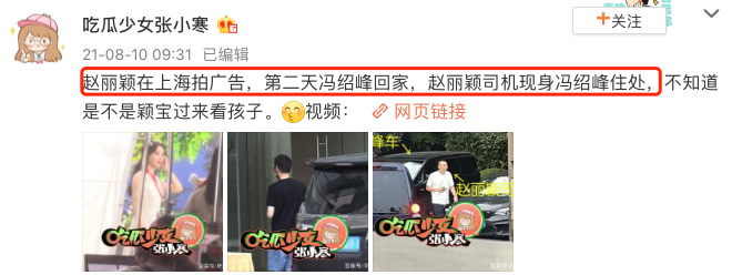 8月初,趙麗穎的司機出現在了馮紹峯家裏,似乎是去看孩子了。