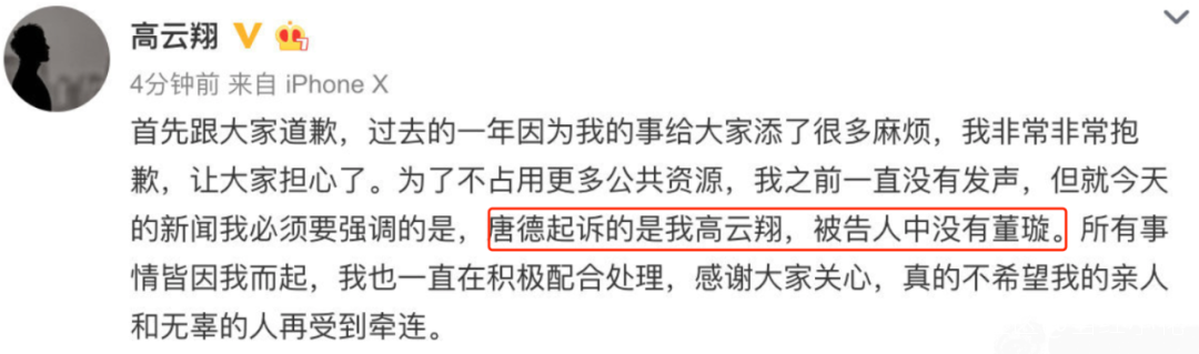 前夫回來之後,唯一一次出面回應,是為了給董璇摘清關係,表面上倒是顯得他擁有某種責任感。