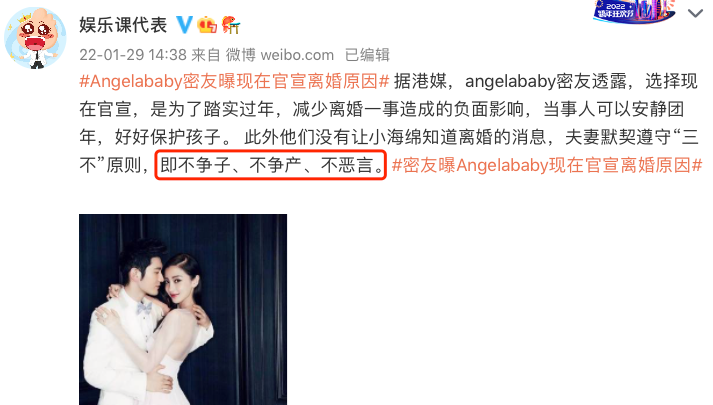 他們官宣離婚後,又整出來了離婚的三不原則。
