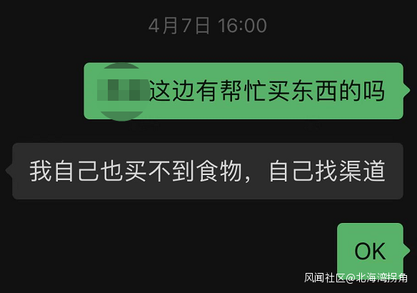 4月初本以為只封四五天的浩哥糧草沒備足,於是開始四處找吃的,第一個想到就是管理員,説實在的,那時候大家都已經自顧不暇了