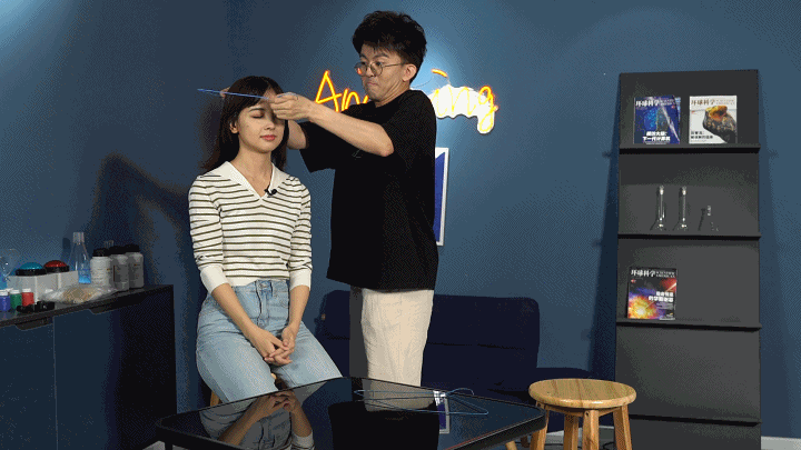 我痛定思痛,打算做個更加穩妥的實驗,所以我選了衣架套頭!我在 2020年7月發過這期 ,講衣架套在頭上,頭就會自動轉起來。這個現象直觀、歡樂、體面,一定能讓冰冰感受到科學的快樂!