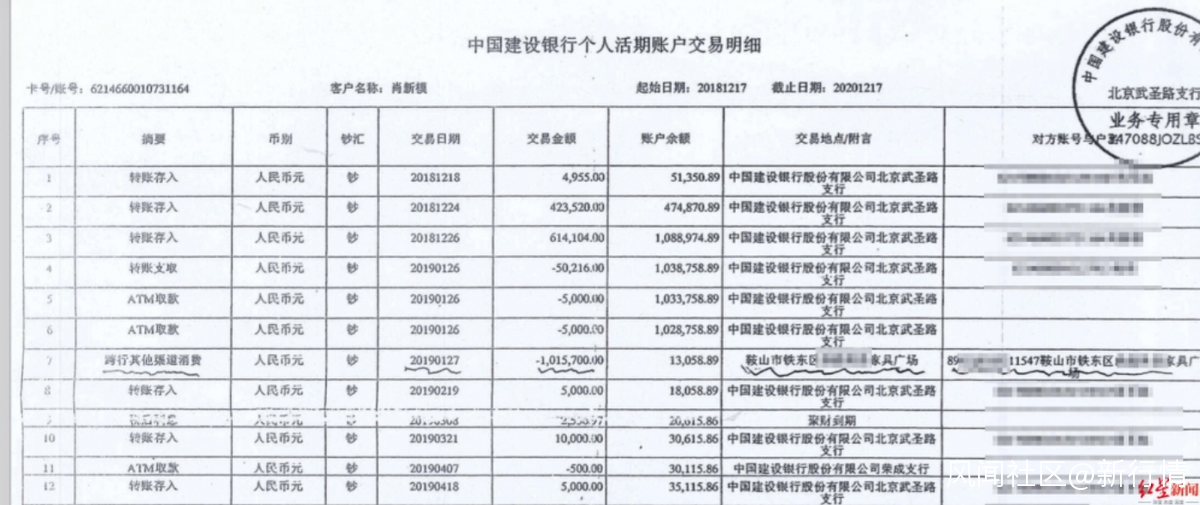 2020年12月,年近耄耋的肖老發現,銀行儲蓄卡在2019年1月有一筆1015700元的支出,這筆支出的收款方為鞍山市鐵東區某傢俱廣場。