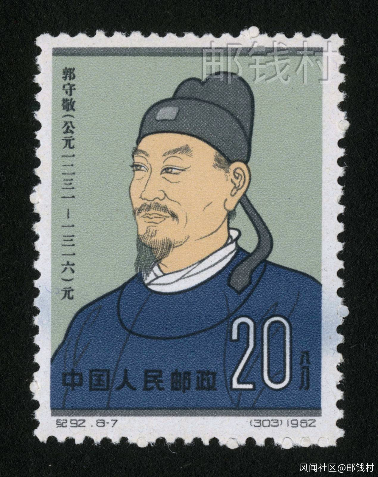 1962年郵電部發行了中國古代科學家第二組,該套郵票由孫傳哲沒計,全套8枚,分別介紹了東漢蔡倫、唐代孫思邈、宋代沈括、元代郭守敬4位古代科學家及其在造紙、醫藥、地質、天文方面的科學成就。郵票發行日期為1962年12月1日。