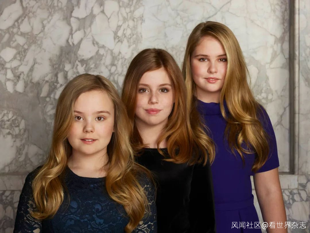 威廉·亞歷山大和馬克西瑪的三個女兒,從左到右分別是:阿麗亞娜公主、亞歷克西亞公主和奧蘭治公主