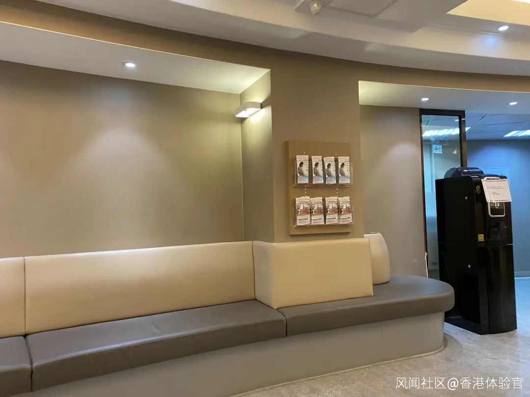 走道兩側有軟座的沙發,沙發邊上有飲品機,可以自己打杯熱咖啡連上醫院的免費WIFI,慢慢地等護士輕呼你的名字。