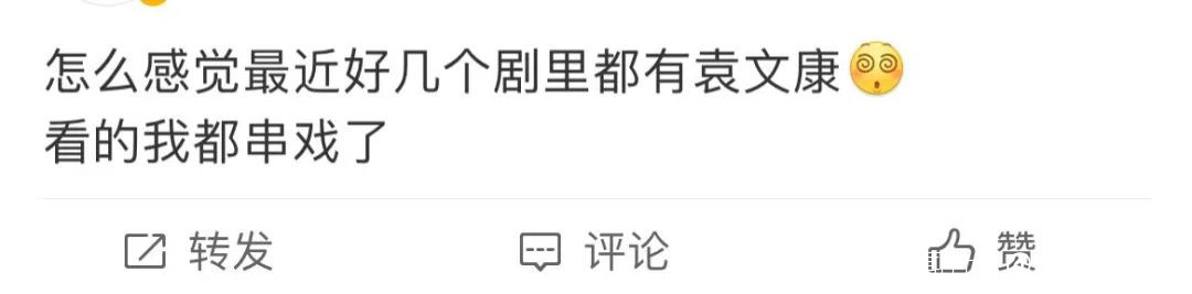 如同網友們在微博上感嘆的那般,近期隨便入坑一部電視劇,都能看到袁文康的臉,實在很難讓人不串戲⬇️