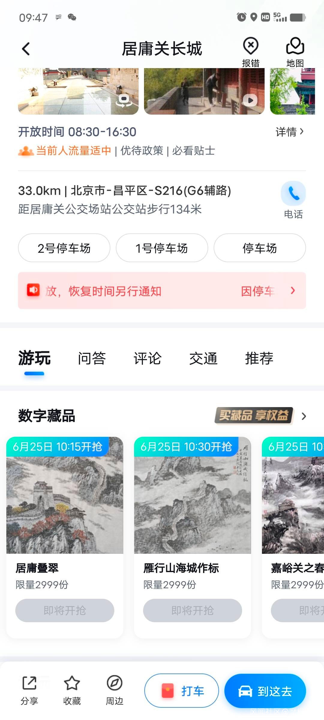 6月25日,百度地圖攜手長城文旅、長城文創、百度超級鏈正式推出獨家長城書畫數字藏品。此次合作是首次在地圖場景下發行文旅行業數字藏品,致力於為公眾帶來出遊與文創藝術體驗一體化的創新體驗,助力景區探索數字文創新模式。