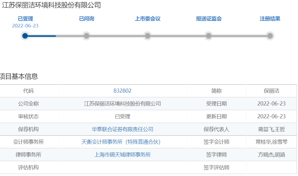 6月24日,資本邦瞭解到,保麗潔(832802.NQ)北交所IPO申請獲受理。