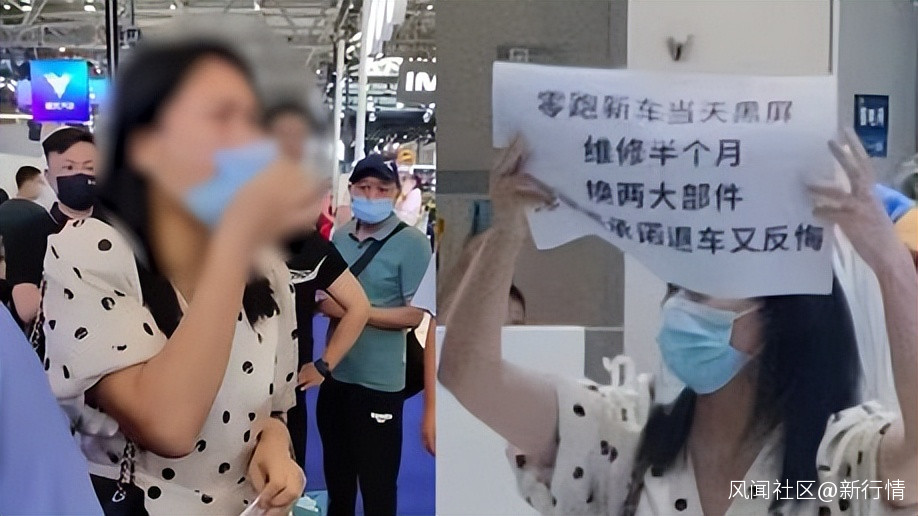 6月25日,一女子在2022年重慶車展上舉着寫有“零跑新車當天黑屏,維修半個月,換兩大部件,承諾退車又反悔”的紙維權。