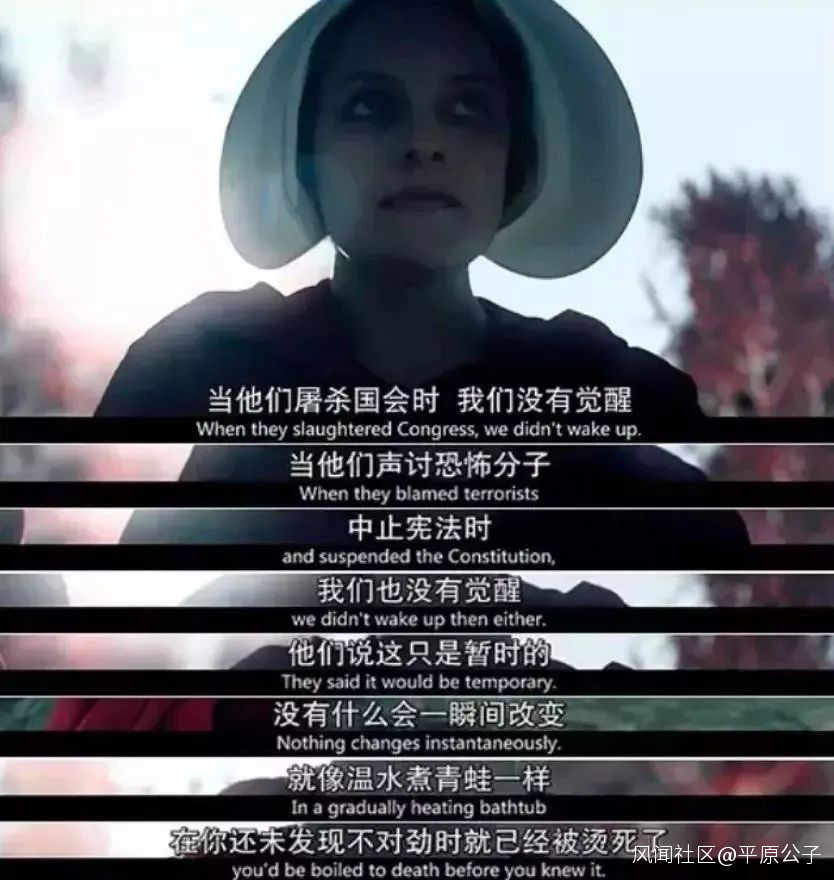 難怪美國人能夠拍出《使女的故事》這樣奇葩腦殘的電視劇,我當時覺得這一定是美國影視圈白左們小題大做、杞人憂天……沒想到還是我見識淺,只懂人,不懂美國人。美國不只是個偽裝成國家的公司,還是個偽裝成教堂的妓院,一切所謂的“進步”、“自由”、“民主”,都是在掩飾盎格魯撒克遜匪幫保守、兇殘、反動、社達的本質。