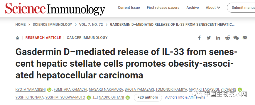 北京時間年6月25日,發表在**《Science Immunology》上的一項最新研究中,來自日本大阪市立大學的研究團隊首次闡明瞭一種與衰老相關分泌表型因子被釋放後進而促進腫瘤發展的機制,並由此提出了一種潛在的治療靶點。該研究結果為促進肥胖相關肝癌的預防和治療策略提供了重要見解。**