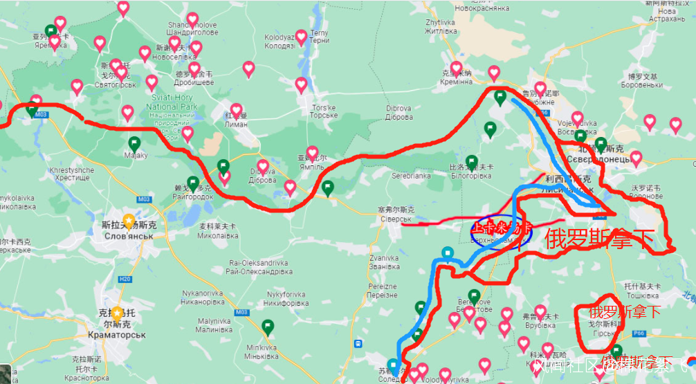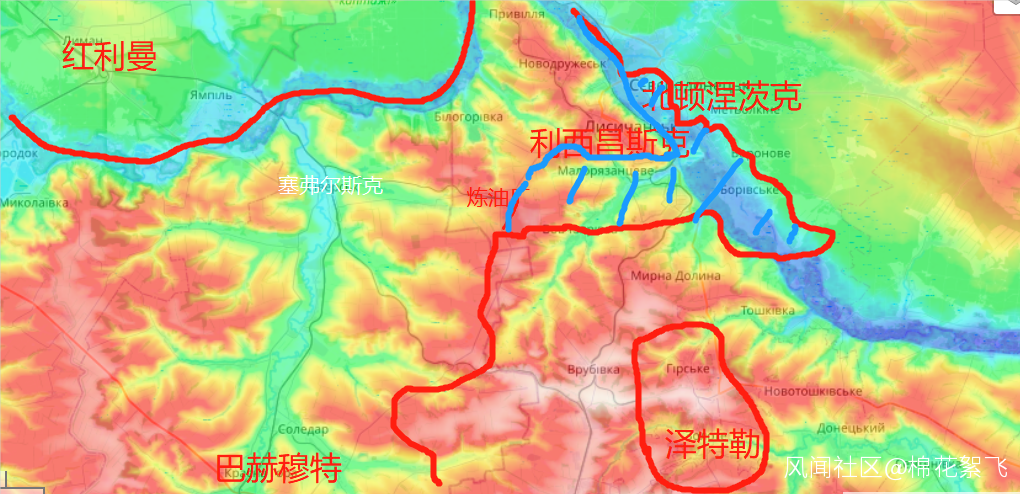 3、斯拉維楊斯克方向和紅利曼方向:馬利基鎮是個隘口,附近是地形較高的卡拉春山,烏軍都設置了陣地,還佈置了大量的地雷陣。比較難打,昨天俄羅斯報導卡拉春山附近烏軍火箭炮陣地上海馬斯襲擊了俄羅斯的舟橋部隊後,可以很清楚的判斷有北約士兵直接參與了戰爭,因為烏軍不可能這麼快就上手這些武器,俄羅斯發動了報復,俄羅斯多枚導彈對該地實施了打擊。有目標被擊中。這個地區短時間棉花絮覺得只能炸平後才能繼續前進了