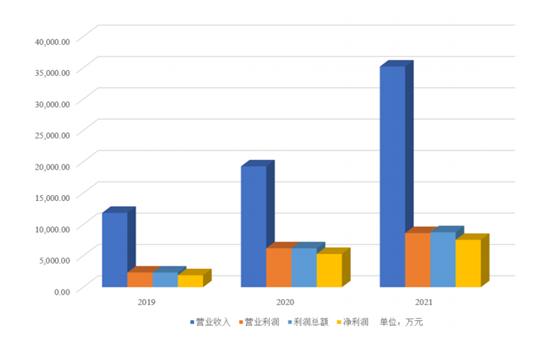 2019-2021年,渡遠户外分別實現營業收入1.19億元、1.93億元及3.52億元;歸屬於母公司股東的淨利潤分別為1910.53萬元、5382.74萬元和7550.28萬元。均呈現持續增長趨勢。