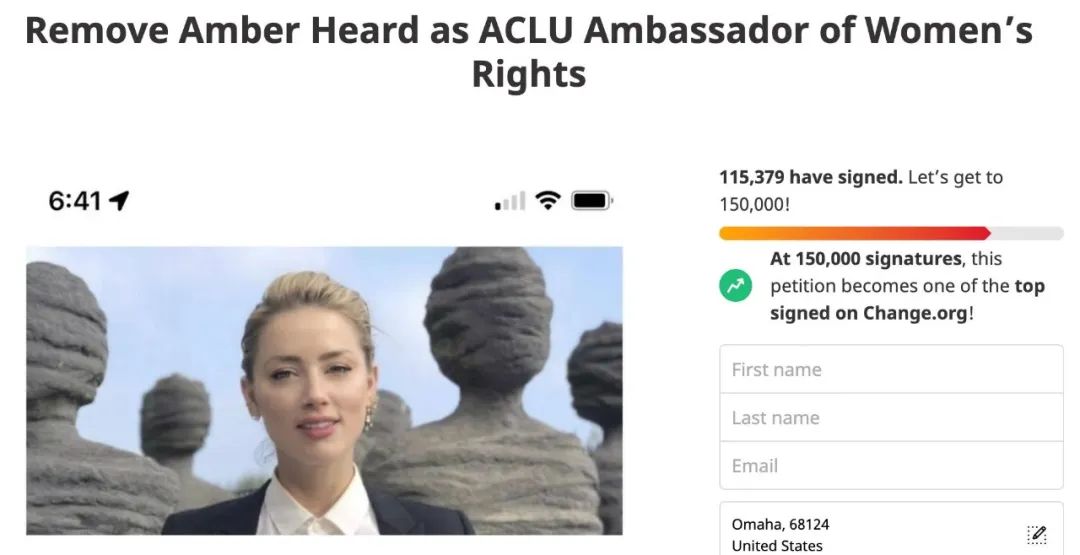 ●要求將安柏赫德從ACLU藝術家大使除名的聯署請願 / Change.org