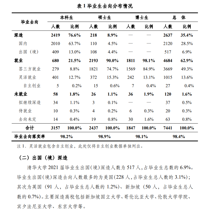 出自清華大學2021年畢業生就業質量報告