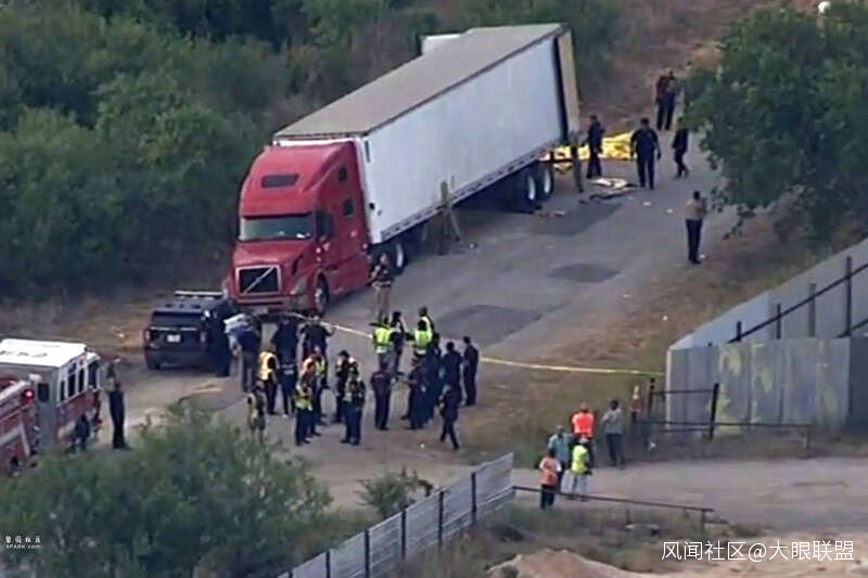 6月27日,當地執法部門在美國得克薩斯州聖安東尼奧市附近的一輛牽引卡車內部發現了46具屍體。他們表示,卡車裏可能有近100人,至少有一半或許已經死亡。