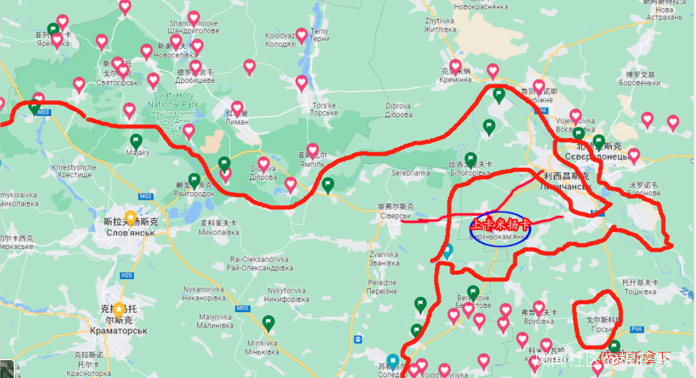 昨天棉花絮報導了雙方的兵力和傷亡,俄羅斯面臨的主要困難,兵力不足。今天繼續討論戰略,目前烏克蘭三道豎向防禦線,第一道已經被攻陷,最後的利西昌斯克基本拿下,烏軍準備防守第二道防禦線,即塞弗爾斯克到巴赫穆特,根據地形分析,其是低地,2個主要據點分佈較遠,如果烏軍集中兵力在這條線,對於俄羅斯是好消息。估計可以分割包圍。棉花絮估計是下一步的俄軍動向。是第1步,同時切斷斯拉維楊斯克和巴爾科文。