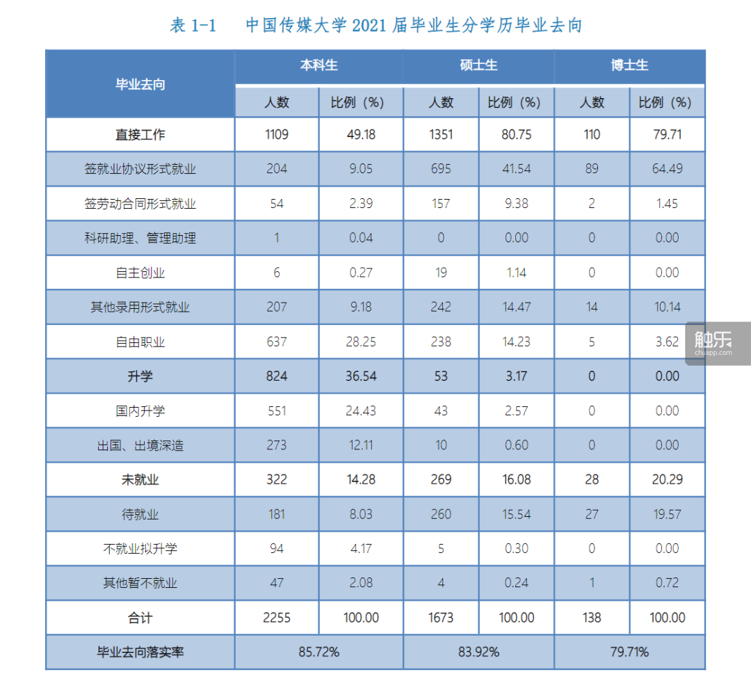 節選自《中國傳媒大學2021屆畢業生就業質量報告》