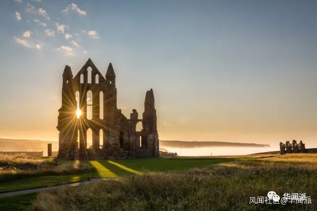 屹立於惠特比鎮東崖(East Cliff)的惠特比修道院是當地的地標之一,要到達這裏,必須要登上著名的199級台階。夕陽西下,修道院廢墟的剪影優美如畫。
