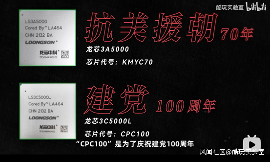 新一代服務器芯片龍芯3C5000L代號“CPC100”,是為了慶祝建黨100週年。