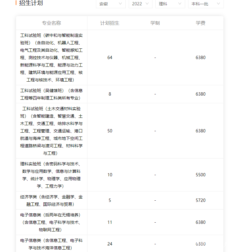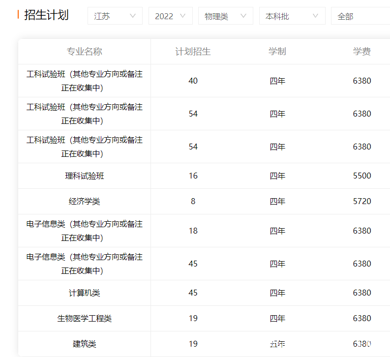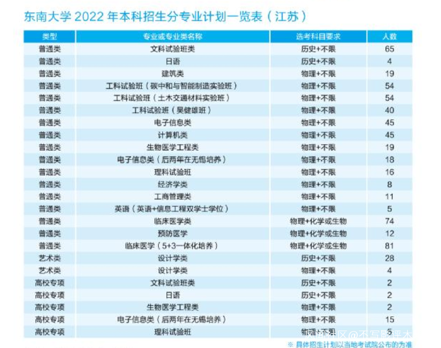 咱們看東大在其它部分省份招生計劃,比如隔壁的安徽省